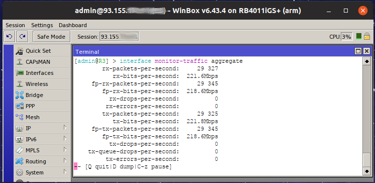 Имам го от месец, беше предназначен за бюро но като му видях производителноста и бързо отиде в един от раковете, 90% от този трафик е видеонаблюдение от различни интерфейси, като поне 30% е през тунели и ВПН, тоест има мачкане на пакети, плюс 20 впн клиента почти без трафик и 20 правила в защитна стена. Размених го с 3011 който се товареше около 30%~40%. Една от изненадите е, че не грее и ми трябваха 5 минути да загрея в кои дупки се завиват болтчетата за ушите на ракмаунта.3 точки