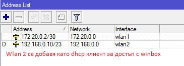 ТАКА, след помоща на JohnTRIVOLTA нещата се получиха! Сега ще покажа настройките при който IPTV-Vivacom работи перфектно: Цел и желания - > Искам локална мрежа в която ще има 3 LAN у-ва, както и N-Брой Wi-Fi. Трябва да върви IPTV по един порт(LAN) и TV по WI-FI Това е един вариант, който е изпитан и работи AKO НЕ СЕ ПОИЛУЧИ!!!!!! РИСЕТВАЙТЕ И ДВЕТЕ У-ВА И ГИ НАСТРОИТЕ ОТ НУЛАТА MT1 Server mipsbe 6.46.6 - > # model = 951Ui-2HnD # serial number = 7BCA0699BB0D /interface bridge add admin-mac=60:E4:27:59:8D:71 auto-mac=no name=bridge1 add name=bridge2 /interface ethernet set [ find default-name=ether1 ] mac-address=60:A9:17:51:8D:71 /interface eoip add local-address=172.20.0.1 mac-address=02:D8:45:94:1F:B5 name=eoip-tunnel1 remote-address=172.20.0.2 tunnel-id=123 /interface wireless security-profiles set [ find default=yes ] authentication-types=wpa2-psk eap-methods="" mode=dynamic-keys supplicant-identity=MikroTik wpa2-pre-shared-key=XXX add authentication-types=wpa2-psk eap-methods="" management-protection=allowed mode=dynamic-keys name=Iptv supplicant-identity="" wpa2-pre-shared-key=XXX add authentication-types=wpa2-psk eap-methods="" management-protection=allowed mode=dynamic-keys name=XXX supplicant-identity="" wpa2-pre-shared-key=XXX /interface wireless set [ find default-name=wlan1 ] band=2ghz-b/g/n channel-width=20/40mhz-XX disabled=no hide-ssid=yes mode=ap-bridge security-profile=Iptv ssid=sasa wps-mode=disabled add disabled=no keepalive-frames=disabled mac-address=6A:5B:6B:EA:25:A5 master-interface=wlan1 multicast-buffering=disabled name=wlan2 security-profile=XXX ssid=XXX wds-cost-range=0 wds-default-cost=0 wps-mode=disabled /ip pool add name=dhcp_pool1 ranges=192.168.0.2-192.168.0.254 /ip dhcp-server add address-pool=dhcp_pool1 disabled=no interface=bridge2 name=dhcp1 /interface bridge port add bridge=bridge1 interface=ether1 add bridge=bridge1 interface=ether2 add bridge=bridge2 interface=ether5 add bridge=bridge2 interface=ether3 add bridge=bridge2 interface=ether4 add bridge=bridge1 interface=eoip-tunnel1 add bridge=bridge2 interface=wlan2 /ip address add address=192.168.0.1/23 interface=bridge2 network=192.168.0.0 add address=172.20.0.1/30 interface=wlan1 network=172.20.0.0 /ip dhcp-client add disabled=no interface=bridge1 /ip dhcp-server network add address=192.168.0.0/23 gateway=192.168.0.1 /ip firewall filter add action=accept chain=input comment=--EstRelUnt-- connection-state=established,related,untracked add action=drop chain=input comment="-- Invalid drop --" connection-state=invalid add action=accept chain=input comment="-- Allow ICMP --" protocol=icmp add action=accept chain=input comment="-- Allow WinBox --" dst-port=8291 protocol=tcp add action=accept chain=input comment="-- Allow GRE --" protocol=gre add action=drop chain=input comment="- Drop all comming from WAN with pub. ip address ---" dst-address=Вашето статично ип in-interface=bridge1 log-prefix="from wan" add action=accept chain=forward comment="-- Allow ipsec in policy --" ipsec-policy=in,ipsec add action=accept chain=forward comment="-- Allow ipsec out policy --" ipsec-policy=out,ipsec add action=fasttrack-connection chain=forward connection-state=established,related add action=accept chain=forward comment=--EstRelUnt-- connection-state=established,related,untracked add action=drop chain=forward comment="-- Invalid drop --" connection-state=invalid add action=accept chain=forward comment="-- Allow ICMP --" protocol=icmp add action=drop chain=forward comment="-- Drop all not dstnated --" connection-nat-state=!dstnat connection-state=new in-interface=bridge1 /ip firewall nat add action=masquerade chain=srcnat out-interface=bridge1 MT2 Client smips 6.46.6 - > [admin@MikroTik] > export compact # may/10/2020 18:17:14 by RouterOS 6.46.6 # software id = PHC8-EDFL # # model = RB941-2nD # serial number = 93710B28060C /interface bridge add name=bridge1 /interface eoip add local-address=172.20.0.2 mac-address=02:E4:57:E2:8F:23 name=eoip-tunnel1 remote-address=172.20.0.1 tunnel-id=123 /interface wireless security-profiles set [ find default=yes ] authentication-types=wpa2-psk eap-methods="" mode=dynamic-keys supplicant-identity=MikroTik wpa2-pre-shared-key=XXX add authentication-types=wpa2-psk eap-methods="" management-protection=allowed mode=dynamic-keys name=Iptv supplicant-identity="" wpa2-pre-shared-key=XXX add authentication-types=wpa2-psk eap-methods="" management-protection=allowed mode=dynamic-keys name=XXX supplicant-identity="" wpa2-pre-shared-key=XXX /interface wireless set [ find default-name=wlan1 ] band=2ghz-b/g/n channel-width=20/40mhz-Ce disabled=no mode=station-bridge security-profile=Iptv ssid=sasa add disabled=no keepalive-frames=disabled mac-address=C6:AD:34:6E:97:69 master-interface=wlan1 mode=station-bridge multicast-buffering=disabled name=wlan2 security-profile=XXX ssid=XXX wds-cost-range=0 wds-default-cost=0 wps-mode=disabled /interface bridge port add bridge=bridge1 interface=eoip-tunnel1 add bridge=bridge1 interface=ether4 /ip address add address=172.20.0.2/30 interface=wlan1 network=172.20.0.0 /ip dhcp-client add !dhcp-options disabled=no interface=wlan2 /system clock set time-zone-name=Europe/Sofia4 точки