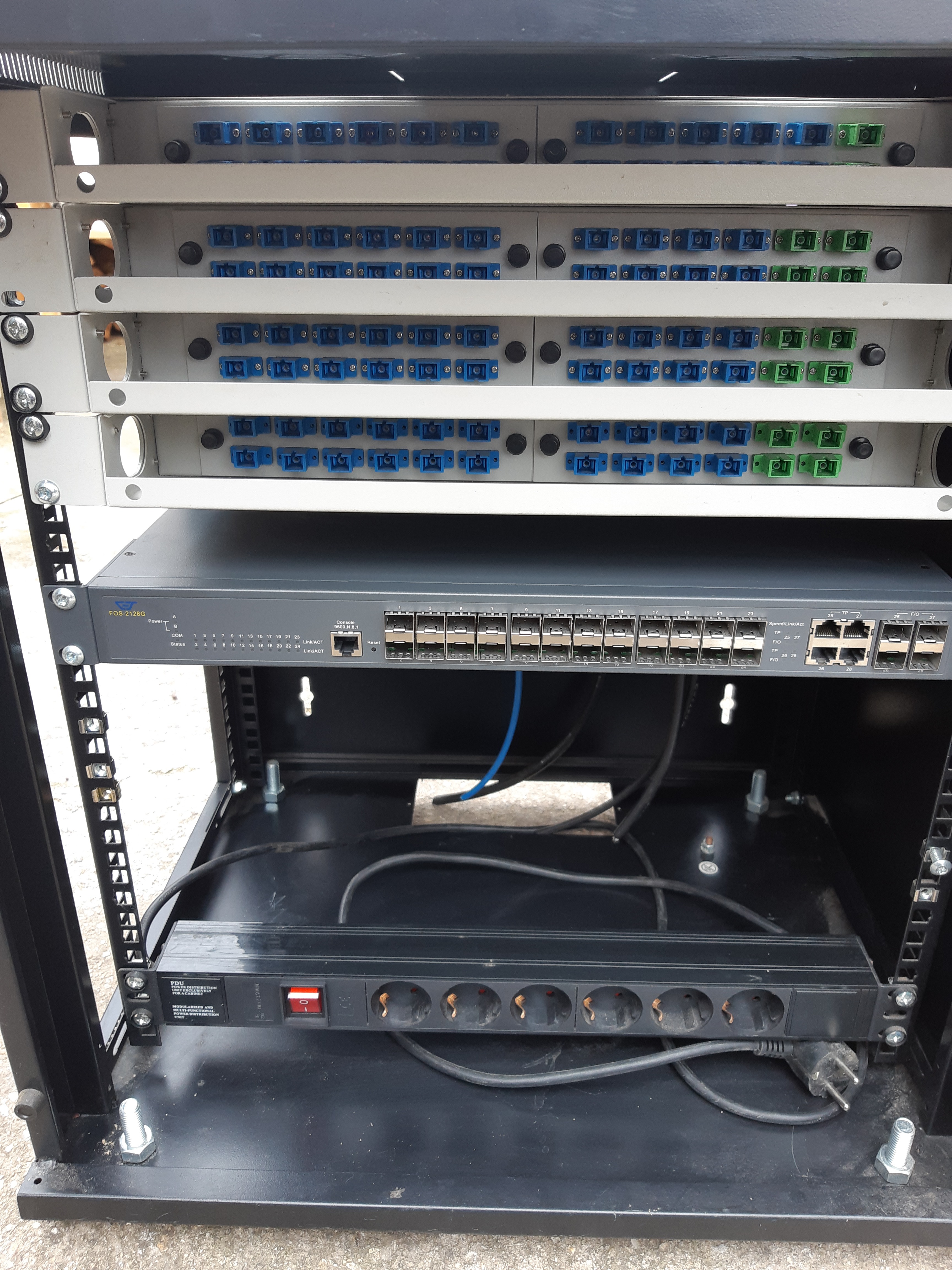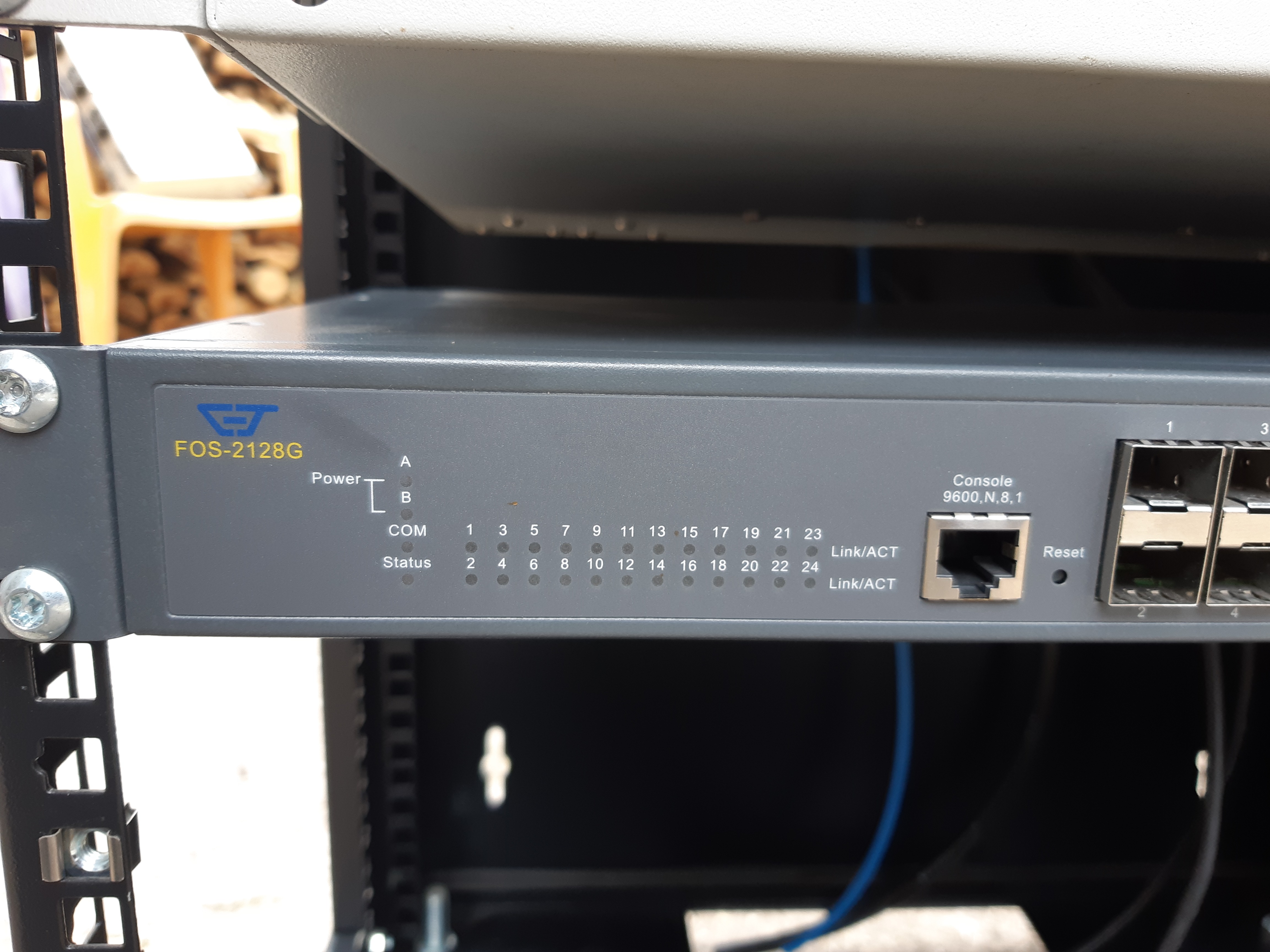 Здравейте, продавам FOS 2128G-24sfp 100mbit порта +4 gigabit комбо SFP+RJ45.Продава се комплект със рак и 4броя 24порт ОДФ.