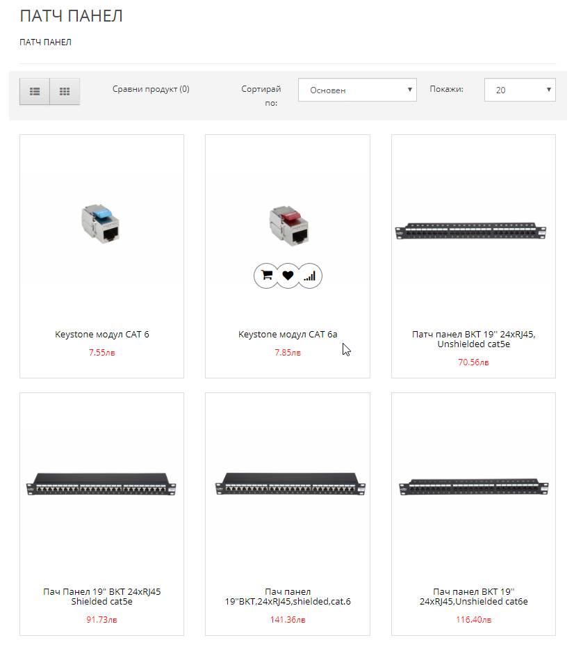 От тук поръчах кутия с 12 keystone слота, 10 бр. cat.6 и 2 бр. F-конектори.