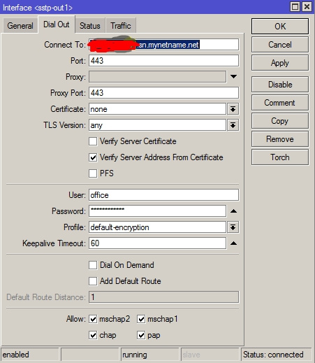 Мои приятел направи тунел между тях всичките така, че да си "говорят заедно" и да вижам устройствата зад тях. Идеята е да си свържа домашня рутер, офиса и на една вила 2 камери, които получават интернет от мобилен рутер. Всичко тръгна, но връзката към микротика, който взема нет от мобилниа рутер на оператора е повече от ужасна. Дори камерите не искат да се вържат в повечето случай.