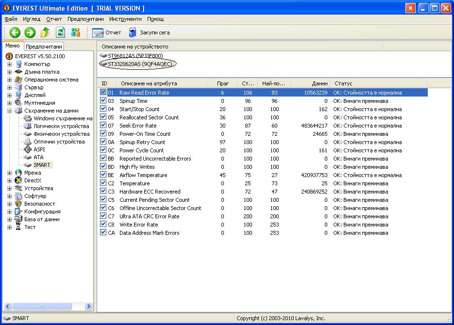 darkavenger Отговорено 5 Май, 2010 Автор Доклад Сподели Отговорено 5 Май, 2010 Ето и шотове. На третия на който има един удивителен знак в Смарт Статуса въпреки че пише че стойноста е нормална му свалям цената на 50 лв, или общо трите за 150 лв. Дисковете са SATA. Адрес на коментара Сподели в други сайтове More sharing options...