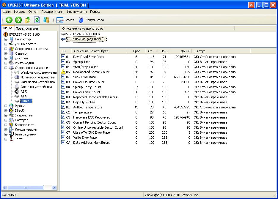 Гост Отговорено 6 Май, 2010 Доклад Сподели Отговорено 6 Май, 2010 Хардовете са на ~150 включвания А на третия скрийншот - Reallocated Sector Count - това увеличава ли се, или си стои на толкова от доста време? Адрес на коментара Сподели в други сайтове More sharing options...
