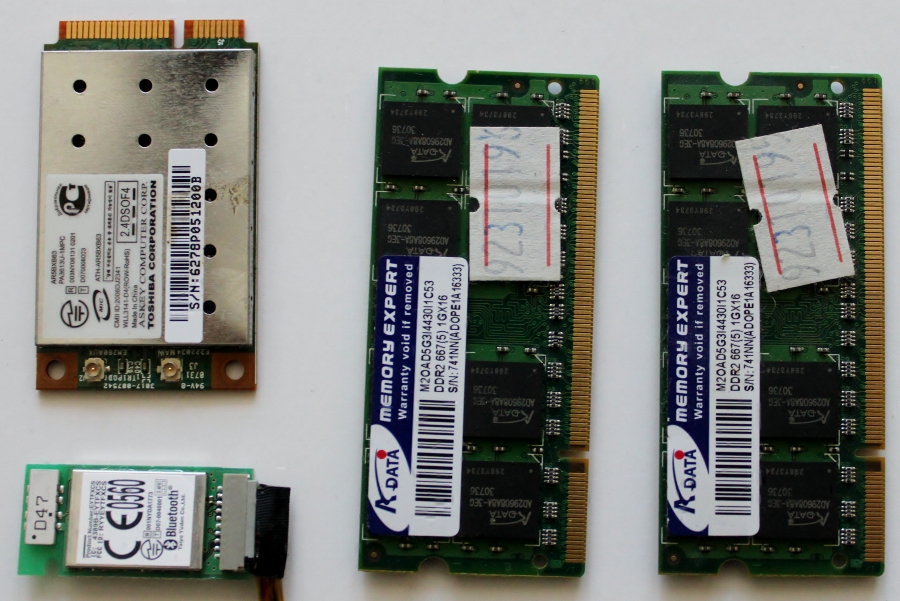 valbg Публикувано 12 Септември, 2011 Доклад Сподели Публикувано 12 Септември, 2011 (Редактирано) Лаптоп Toshiba Satellite A200 на части Купен е от Технополис преди 3 години. Счупиха му се пантите на екрана. При отварянето за смяна на пантите и почистване се счупиха няколко от сглобките на долния капак и вече ремонта му стана неоправдан. Поради тези причини го предлагам на модули: 1.Дънна платка + процесор + вентилатор = 20 лв К000051290 WК 736K Intel945, GMA900, IEEE1394, 5in1, TVout Pentium Dual-Core T2130 (1.86GHz, 1MB L2cache) 2.Екран - 30 лв 15.4" WXGA TruBrite (1280x800), със счупени панти 3.Горен панел(говорители,тъчпад) + клавиатура = 10 лева има две пукнатини в лявата странаNSK-TAM0U 4.Дисково устройство = 10 лева DVD Super Multi drive DL / TS-L632 последно не харесваше за записване някои марки DVD 5.Батерия държи 15-20 мин = 10 лева Li-ion PA3534U-1BRS / 4000mAh 6.Захранващ адаптер = 30 лева PA-1750-09, 19V/3.95A 7.Безжичен мрежов адаптер = 15 лева ASKEY 802.11b/g, ATH-AR5BXB63, WK736K 8.Блутут адаптер = 15 лева PA3608U-1BTM, EYTFXCS 9.Два броя памети 1GB, по 25 лева = 50 лева A-DATA DDR2/667 SODIMM 10.Хард диск 120GB = 50 лева Fujitsu SATA 120GB, 2.5", MHW2120BH Всичко без паметите и хард диска = 100 лева Всичко накуп = 180 лева Паметите + диска = 80 лева За контакти: 0898722286 Изпращам по куриер от Казанлък за сметка на купувача Редактирано 12 Септември, 2011 от valbg Адрес на коментара Сподели в други сайтове More sharing options...