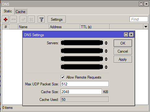 Тъй като 2-3 пъти пада основния DNS на доставчика ни реших да сложа в микротика алтернативни DNS и ( които преди това тествах и работеха без забележки ). На клиента зад микротика за DNS е зададен адреса на микротика, за алтернативен DNS е зададен един от алтернативните които са и в самия рутер. Да но като цяло не работи коректно при падане на основния DNS и не мога да разбера дали пропускам нещо аз ?