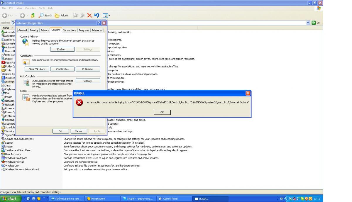Пробва ли да смениш файл inetcpl.cpl от инсталационен диск Windows XP?
