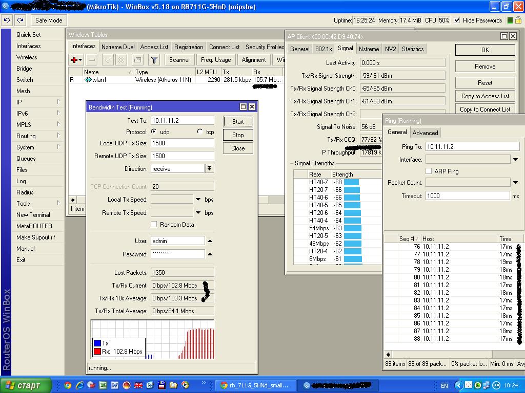Тодор Лазаров Отговорено 27 Юни, 2012 Автор Доклад Сподели Отговорено 27 Юни, 2012 Даже се изненадвам че и това си успял да постигнеш-моите наблюдения за тези антени са макс до 12-15км.Определено не ти достига сигнал за N нивото трябва да е -50 ако искаш свестни трафик и CCQ.Ако имаш възможност смени дишовете с 120-140см и спокойно ще качиш на тест над 200Мбит Там е проблема че антени трудно ще сменя Или да сменя само от страната с лошо CCQ между другото TX CCQ-to е по-зле това значи ли че при мен е проблема или от другата страна Адрес на коментара Сподели в други сайтове More sharing options...