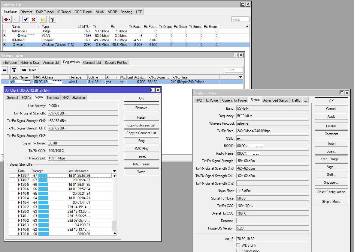 bambo Отговорено 13 Октомври, 2012 Доклад Сподели Отговорено 13 Октомври, 2012 (Редактирано) За какво разтояние говорим и със кой антени 30-ките или 34-ките м/у 9 и 10км, roketdish 30db. сигнал около -55. На същия линк, без да пипам антените, бяха 711G. Като скорост го докарваха на 200Mbps но цпу-тата си казваха думата при по-интензивен трафик. роект титаниум показага горе-долу същото и на тестове на бюрото със малки антенки. Редактирано 13 Октомври, 2012 от bambo Адрес на коментара Сподели в други сайтове More sharing options...