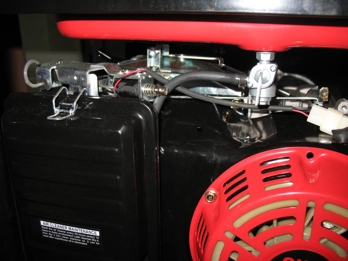 един колега наскоро взе генератор от рода на булпоуер само че с модул и преправен за автоматичен старт , смукача има положение само вкл и изкл. бях снимал само него от сорта на ел-магнитен винтил. Проблема в случая не е смукача а честотата и синусоидата на изхода , при голямо натоварване на генератора се променя синусоидата а умния UPS хич не му харесва и изключва.