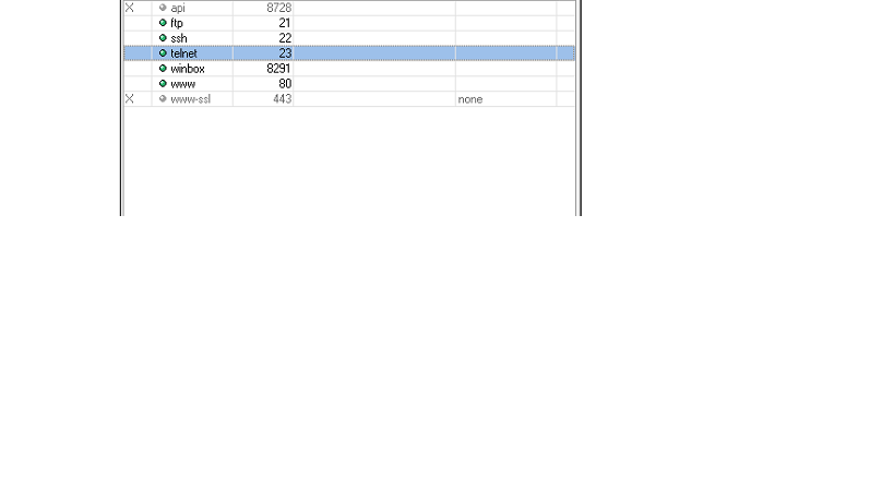 Гледах на service port няма възможност да добавя 22 и 80 порт.Пробвах и /ip service> enable ssh