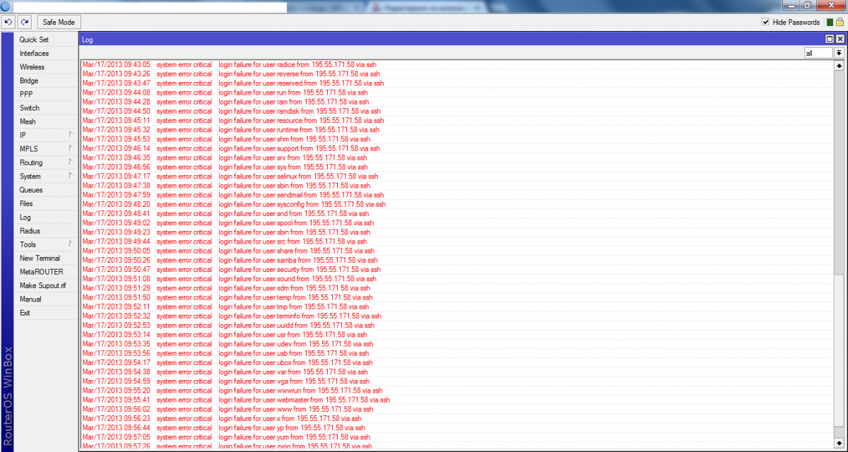 В log-a на рутера има само промени, които съм правил, но не и отказани сесии.