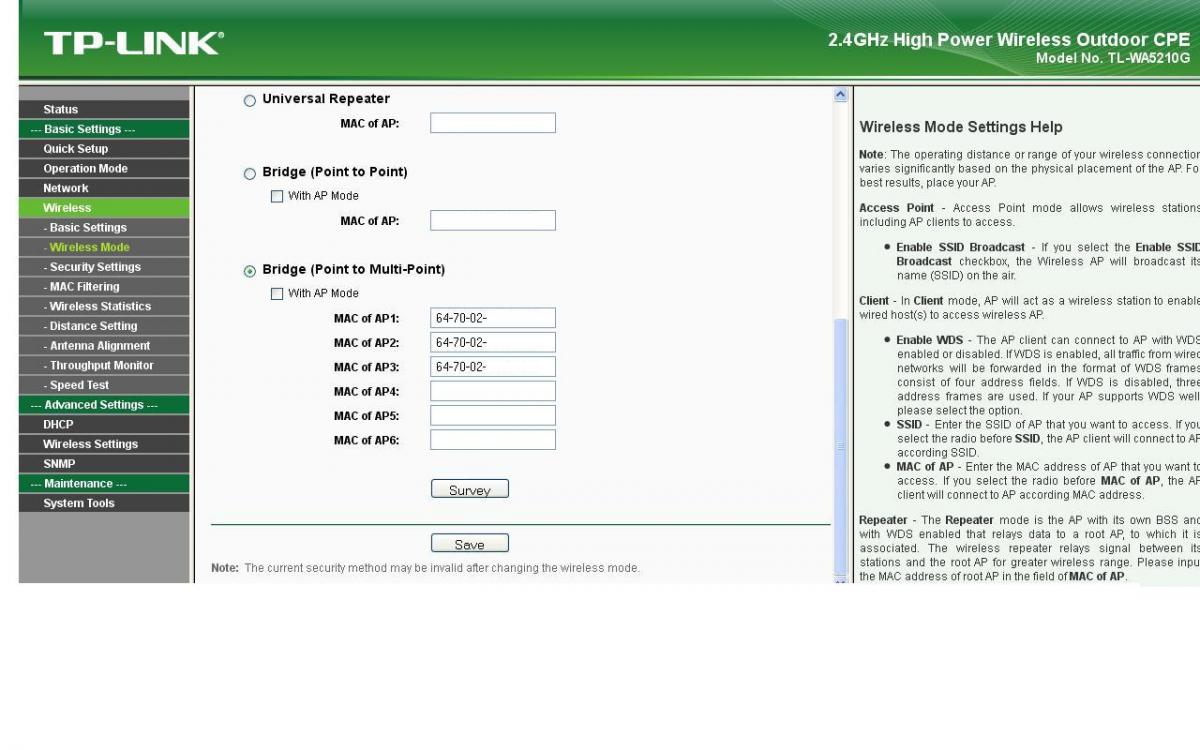 въпроса ми е трябва ли да правя настройки на рутера които приема нета в случая TL-WR740N искам да се закача за него но не става на един канал съм избирам от Survey рутера с MAC adresa.....после connect.Но не се закача.Мрежата не е кодирана с парола.И дали може TL-WA5210G bride point to point когатo е кодирана с WPA..WPA2.TL-WR740N е с оригиналният фърмуер