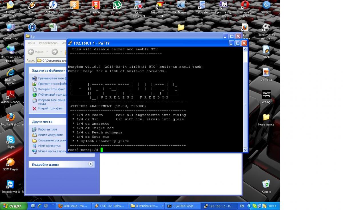lino_st Публикувано 16 Юни, 2013 Доклад Сподели Публикувано 16 Юни, 2013 здравейте във бързината си обърках бина и сложих погрешен бин на едно тп-link 740н в 2.интересното е че сега има инсталиран опенврт но имам достъп само през telnet с putty аз не сам запознат с telnet как се работи и незнам как да сложа другия бин които си е за рутерчето. сложих този :openwrt-ar71xx-generic-tl-wr740n-v1-jffs2-factory а трябваше този :openwrt-ar71xx-generic-tl-wr740n-v1-squashfs-factory Адрес на коментара Сподели в други сайтове More sharing options...