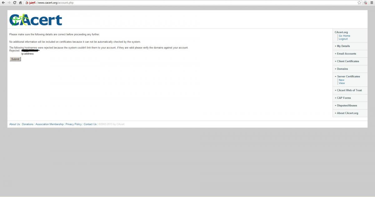 Нали знаеш, че ти е нужен и собствен домейн за който да се издаде сертификата?