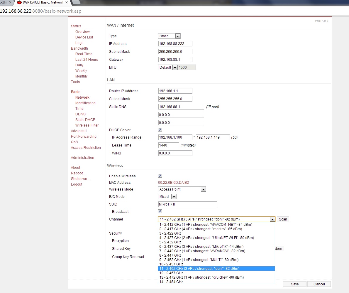 Това е начина да вържеш няколко рутера, на които им се припокриват зоните на покритие. Затова са измислени тези канали. Ако много държиш да ги ползваш и двата, единия го вържи на 6-ти канал, другия го остави на 11. Каналите, които не си припокриват честотната лента са 1, 6, 11 и 14.