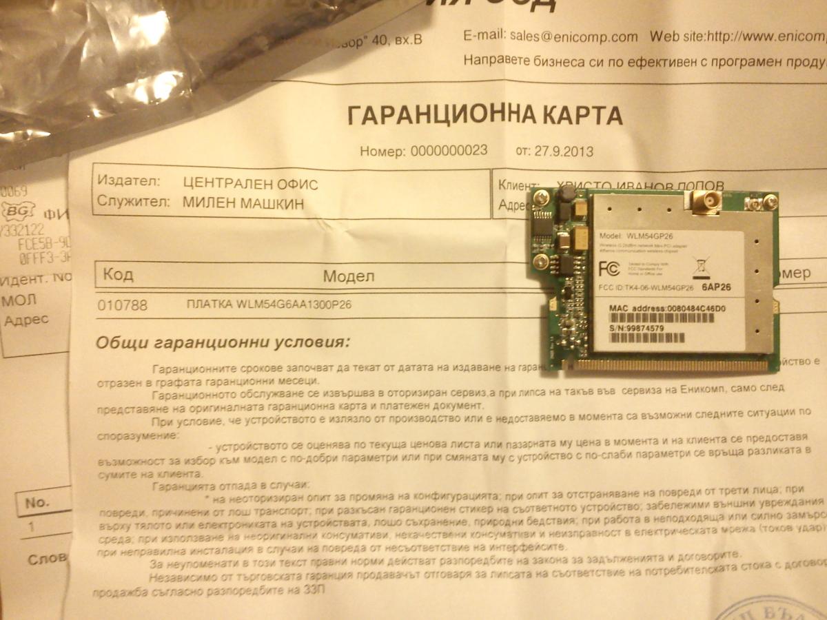 Картата е на практика нова /закупена е на 27.09.2013г/- работила е по-малко от месец, но се оказа излишна в последствие!