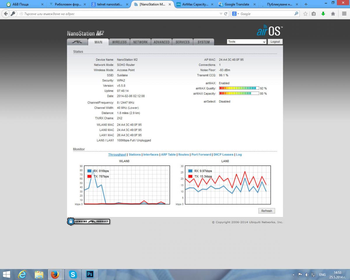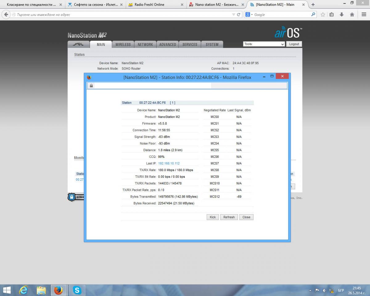 Здравейте на всички. Имам вече изградена връзка с два броя Nanostation M 2. Искам да ви питам тази сила на сигналите добра ли е или може да се постигне още нещо.
