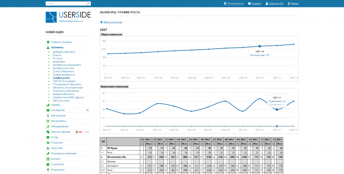 CRM система UserSide е активно разработвана от 2007 година система за планиране на ресурсите на ISP. Ситемата е изцяло web ориентирана и позволява ефективно управление на всички процеси в ISP. Възможно е взаимодействие със различни билинг системи, работа с оборудване (и по SNMP), склад, счетоводство и персонал. Провеждане и проследяване на рекламни кампании, съобщения от/за абонатите и интерфейс за подаване на заявки за включване през web. Календар със задачи, лична страница за абоната с доста полезна информация.