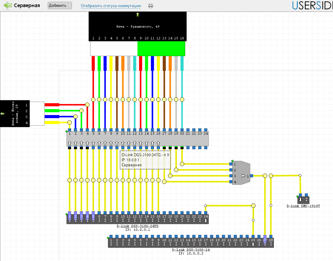- показване в реално време на състоянието на устройствата и техните портове, възможност за контрол на портовете