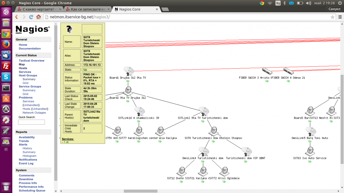 Всеки обект има възможност за коментар, картинка, линк, към кой е свързан и т. н. съответно има групиране по услуги, логическо групиране и сърч. Не обичам да плащам такива неща затова е безплатно естественно, някои плачат, че се конфигурирал трудно. Не е трудно - просто трябва да се научи човек как се работи с текстов редактор а ако не може по добре да си търси друга работа. Не ползвам всичко а само това което ми трябва, не съм добавял икони, картинки, услуги защото не ми трябват, не обичам шарениите, има приложение за андроид което писука ако падне нещо ...