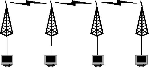 Представям си го като множество p2p линкове. Всеки две съседни станции имат дедикирана връзка една с друга.