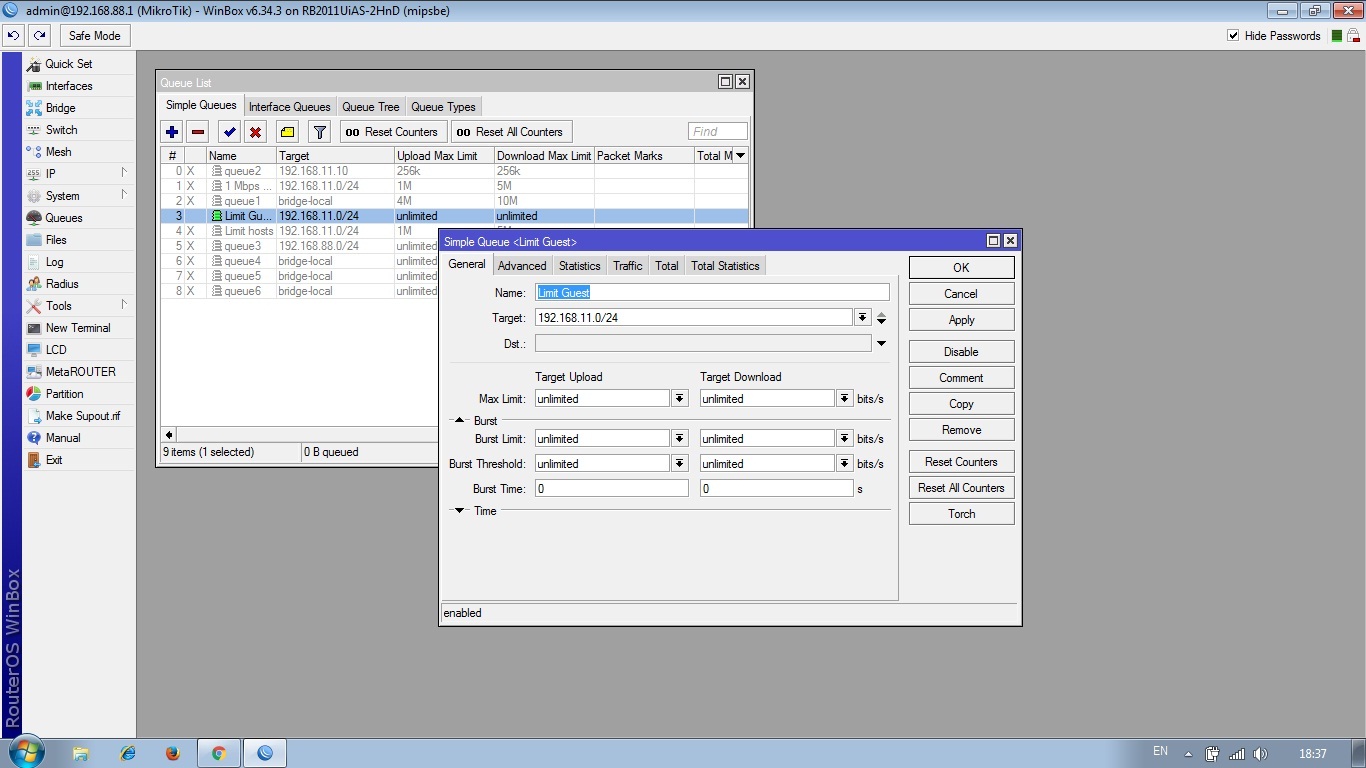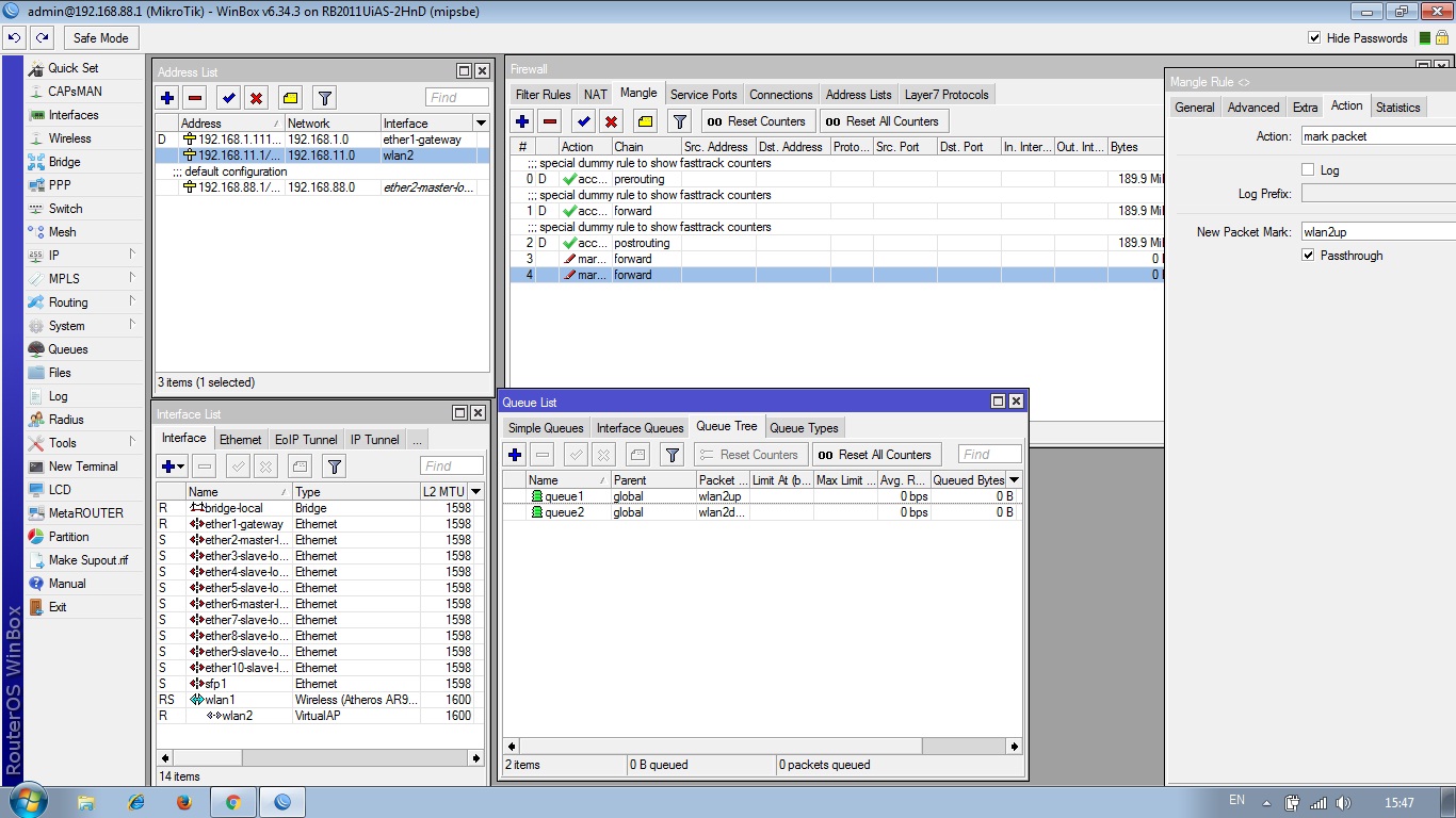 Ами идеята ми е единия "wlan2" (ще е второ ssid (192.168.11.0/24)) да ми е с 1мегабит ъплоуд и 5 мегабита даунлоуд.