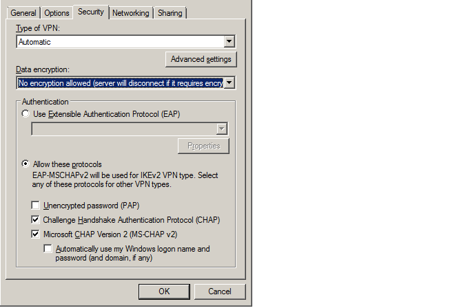 0 Null Отговорено 16 Март, 2017 Доклад Сподели Отговорено 16 Март, 2017 (Редактирано) Даваш Properties на иконата на VPN канекцията ти от там на Security и на Data encryption даваш No Encryption allowed... и си готов Редактирано 16 Март, 2017 от Null Адрес на коментара Сподели в други сайтове More sharing options...