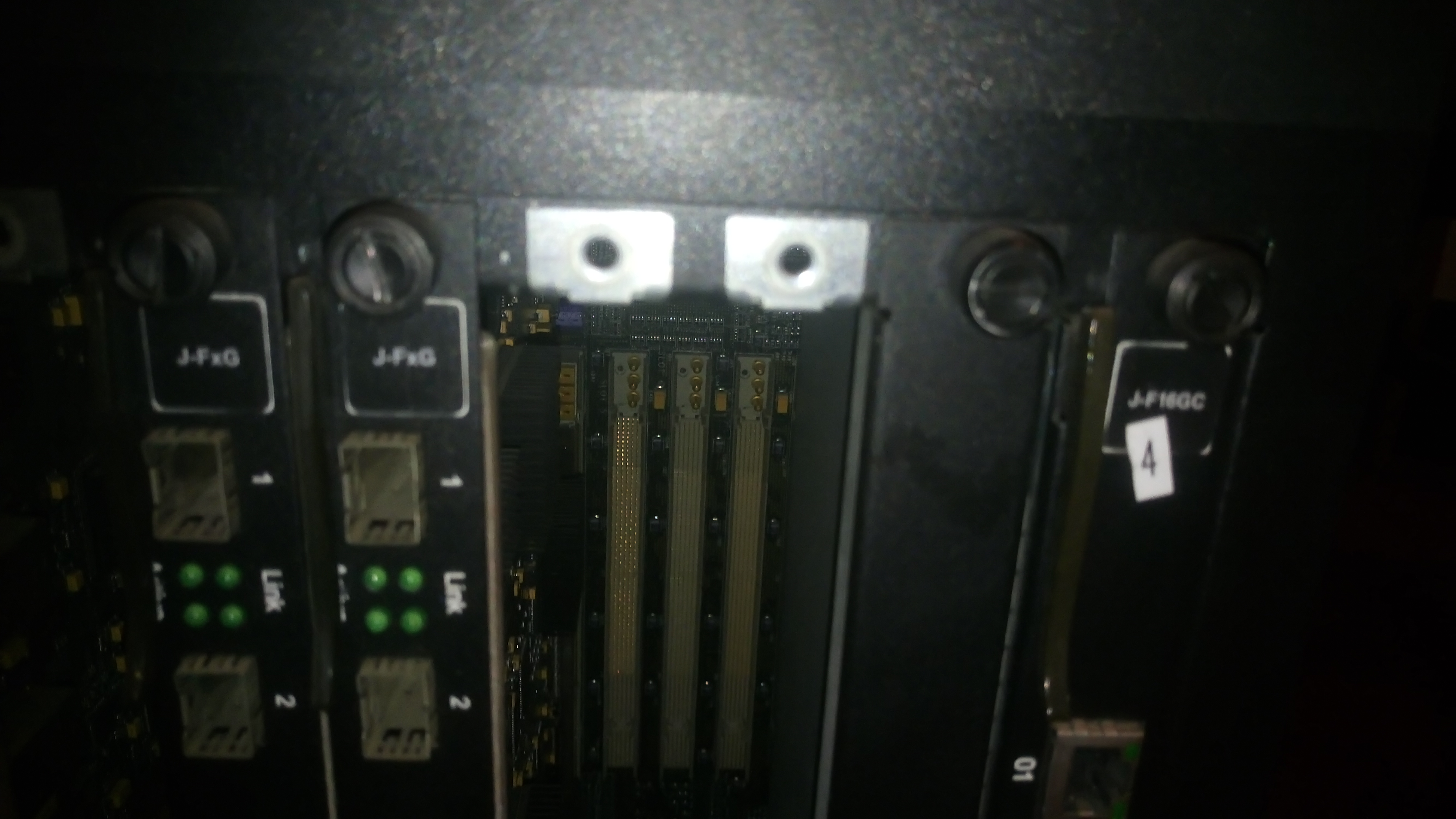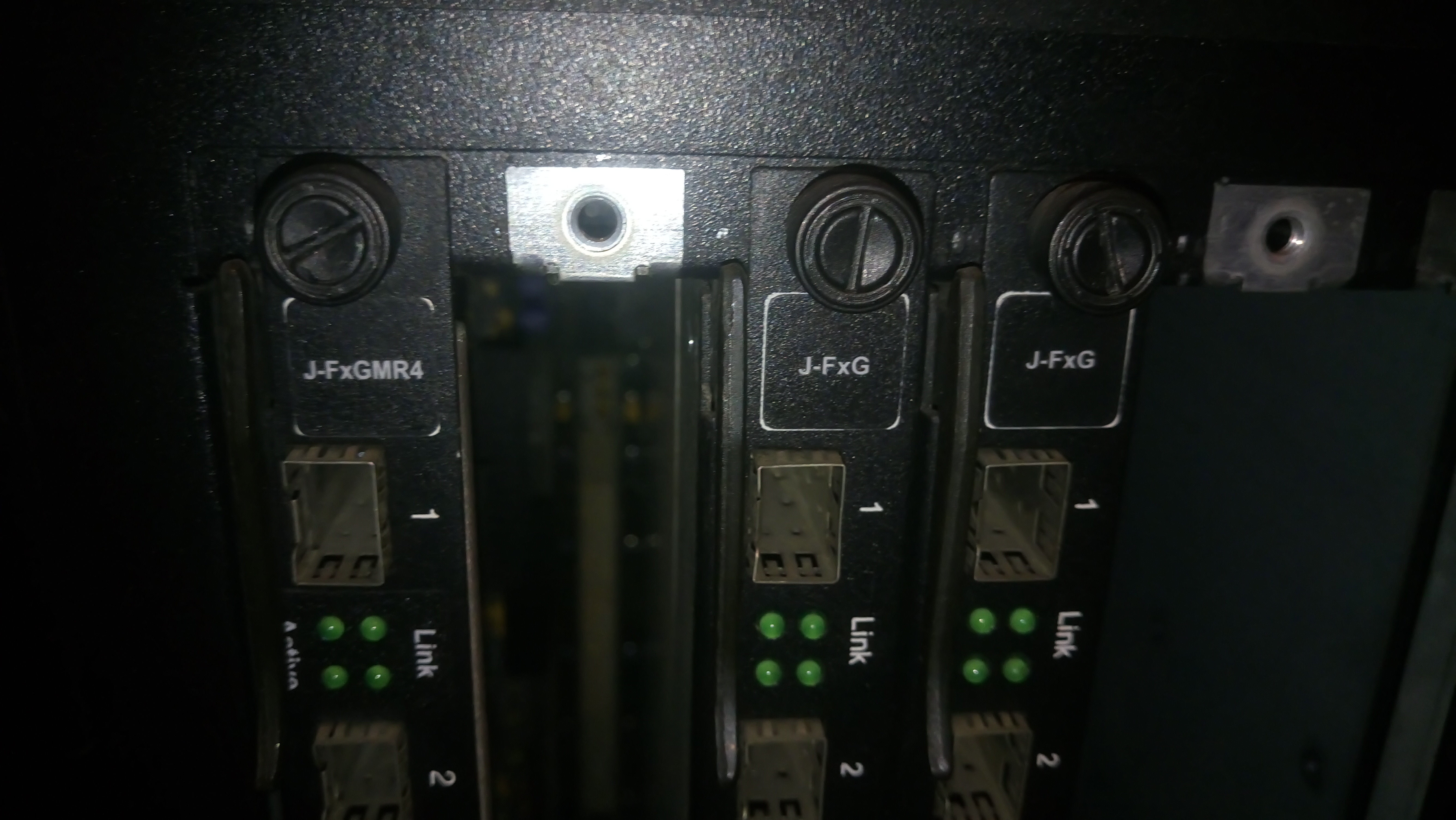 а) J-FxGMR4 - това е управляващият модул. На него има 8 SFP порта